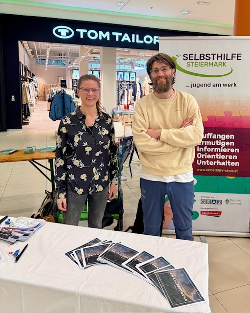 Am 6. März 2026 war Achterbahn Steiermark im Rahmen der „Gesundheitstage“ im Leoben City Shopping – dem größten Shoppingcenter der Obersteiermark – vor Ort. Mit am Infotisch waren Selbsthilfe Steiermark, die Lebenshilfe und SALZ (Steirische Alzheimerhilfe – Verein für Angehörige von Menschen mit Demenz in der Steiermark) vertreten.