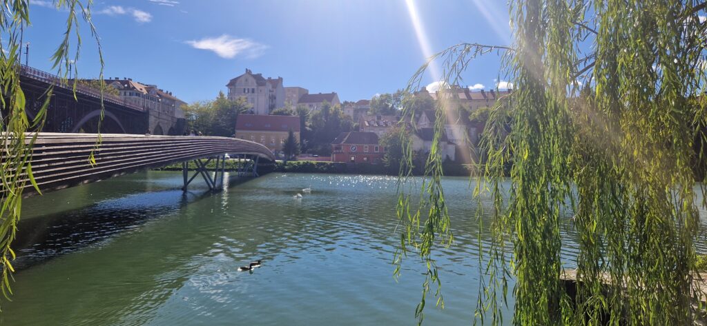 Nach der umfangreichen Stadtführung lud die autofreie Innenstadt mit ihren zahlreichen Läden, Lokalen und dem wunderschönen Ufer an der Drau bei strahlendem Herbstwetter zum Bummeln und Verweilen ein.