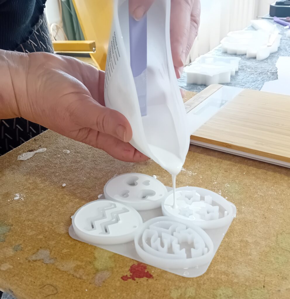 Während ihre Kunstwerke trocknen, können Teilnehmer:innen sich bei Interesse selbst am Mischen der Keramikmasse und dem Gießen der Figuren ausprobieren.